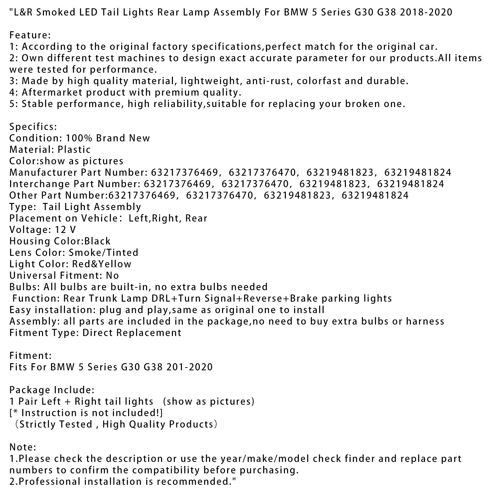 Gruppo ottico posteriore a LED fumé per BMW 5 G30 G38 L&R 2018-2020 63217376469 63217376470