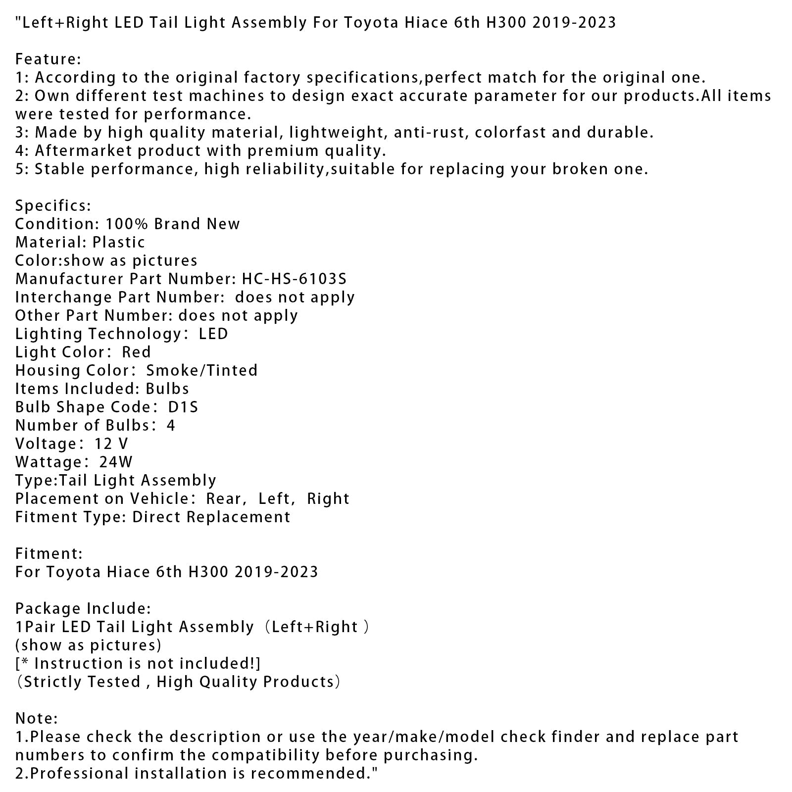 1. Prima dell'acquisto, controllare la descrizione o utilizzare lo strumento di ricerca per anno/marca/modello e sostituire i numeri dei pezzi per confermare la compatibilità.