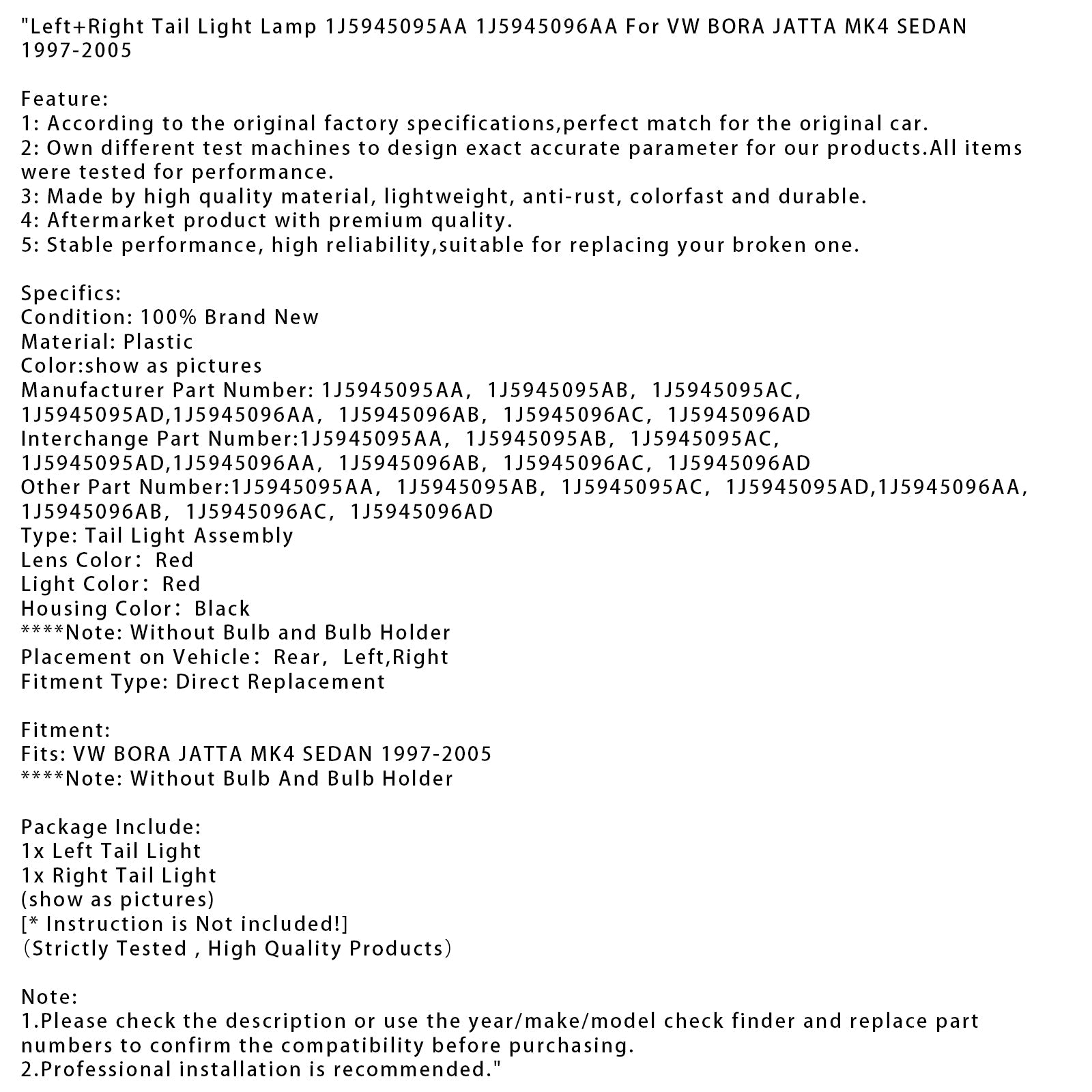 Numero di parte del produttore: 1J5945095AA,1J5945095AB,1J5945095AC,1J5945095AD,1J5945096AA,1J5945096AB,1J5945096AC,1J5945096AD