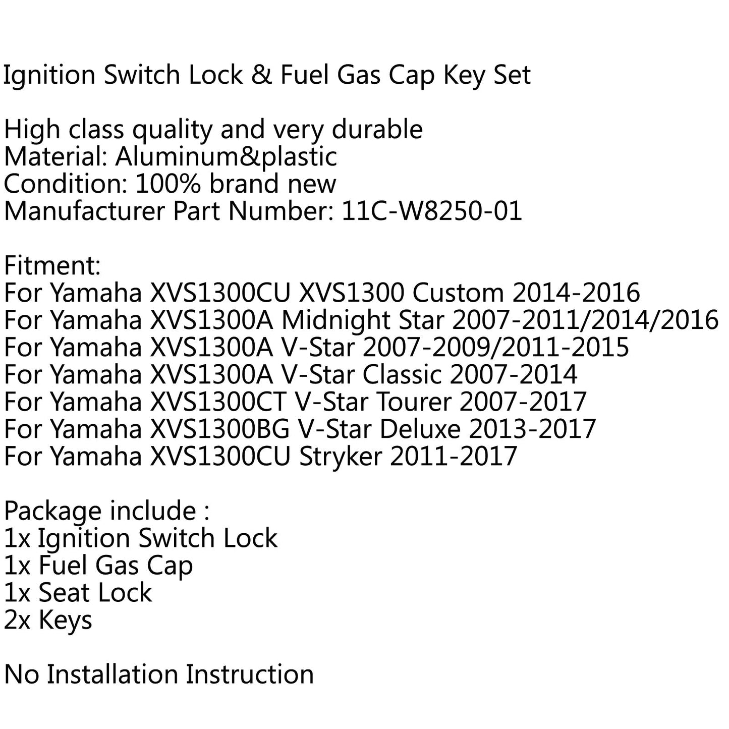 Interruttore di accensione Sedile Tappo Gas Coperchio Serratura Chiave Set Per Yamaha XVS1300CU XVS1300 Generico
