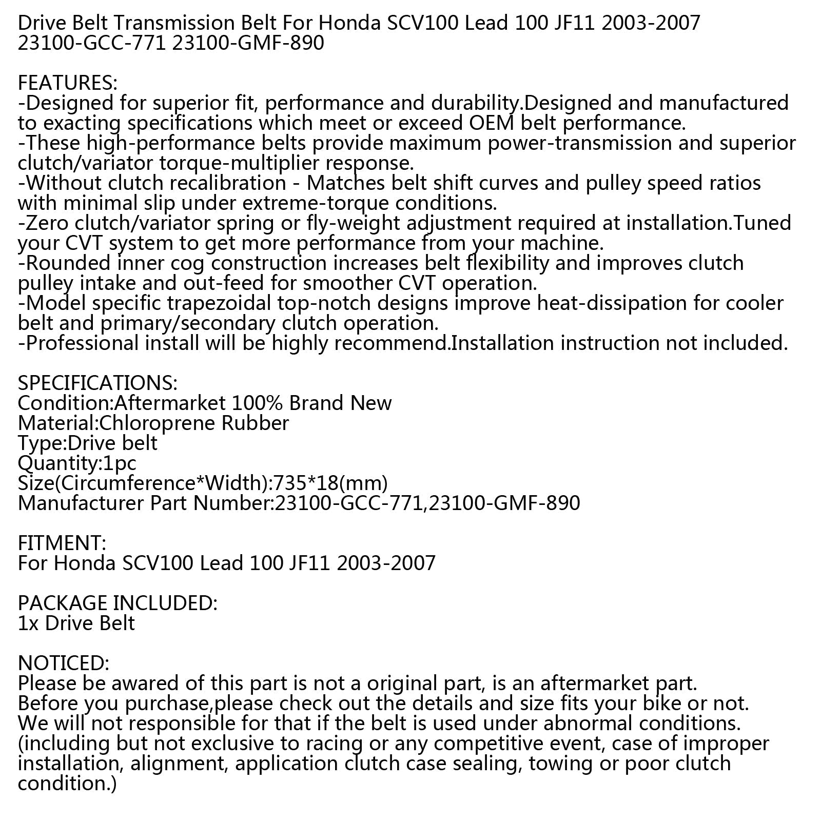 Cinghia di trasmissione 735OC x 18W per Honda SCV 100 Piombo JF11 03-07 Scooter 23100-GCC-771 Generico