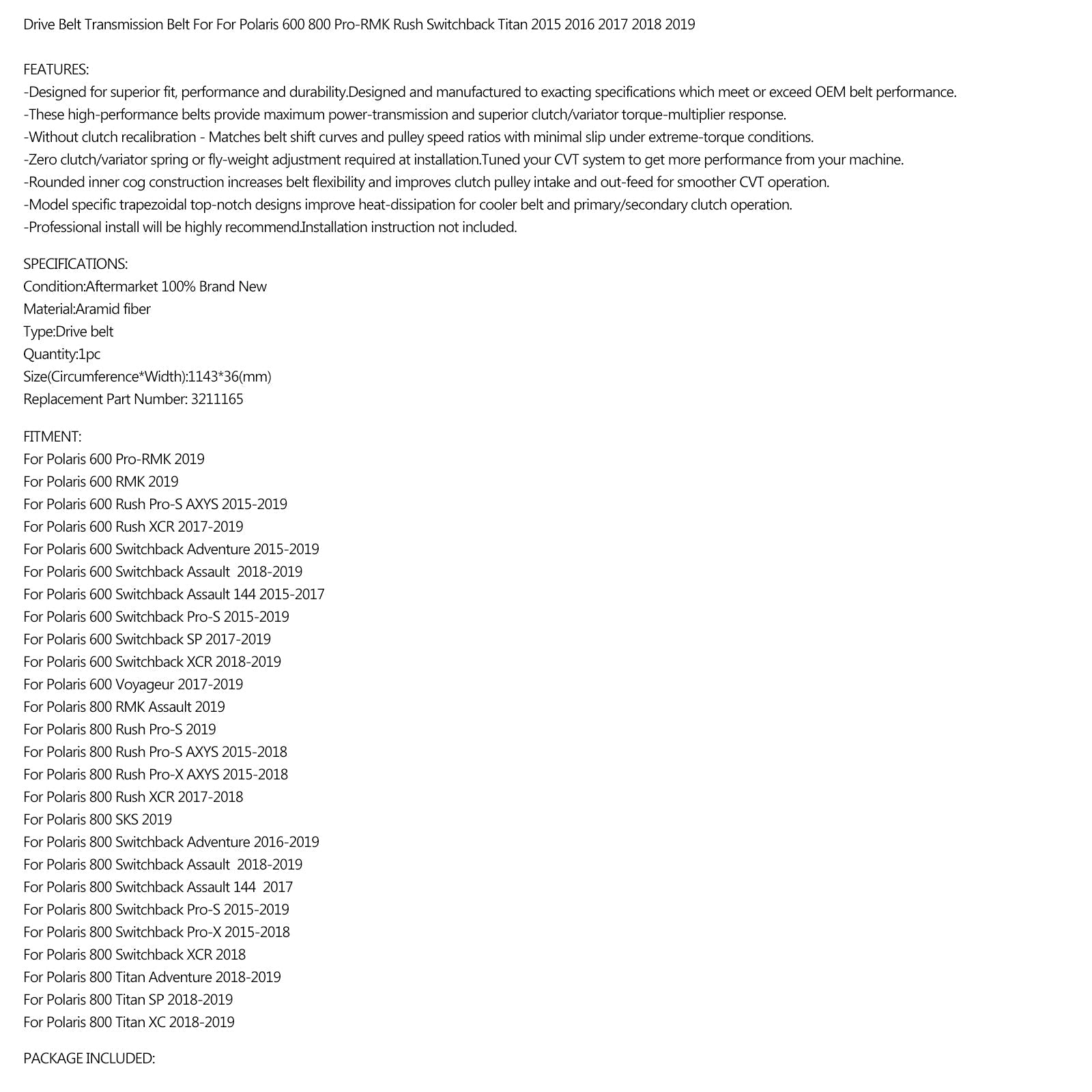 Cinghia di trasmissione Cinghia di Trasmissione Per Per Polaris 600 800 Pro-RMK Rush Switchback Titan 2015 2016 2017 2018 2019