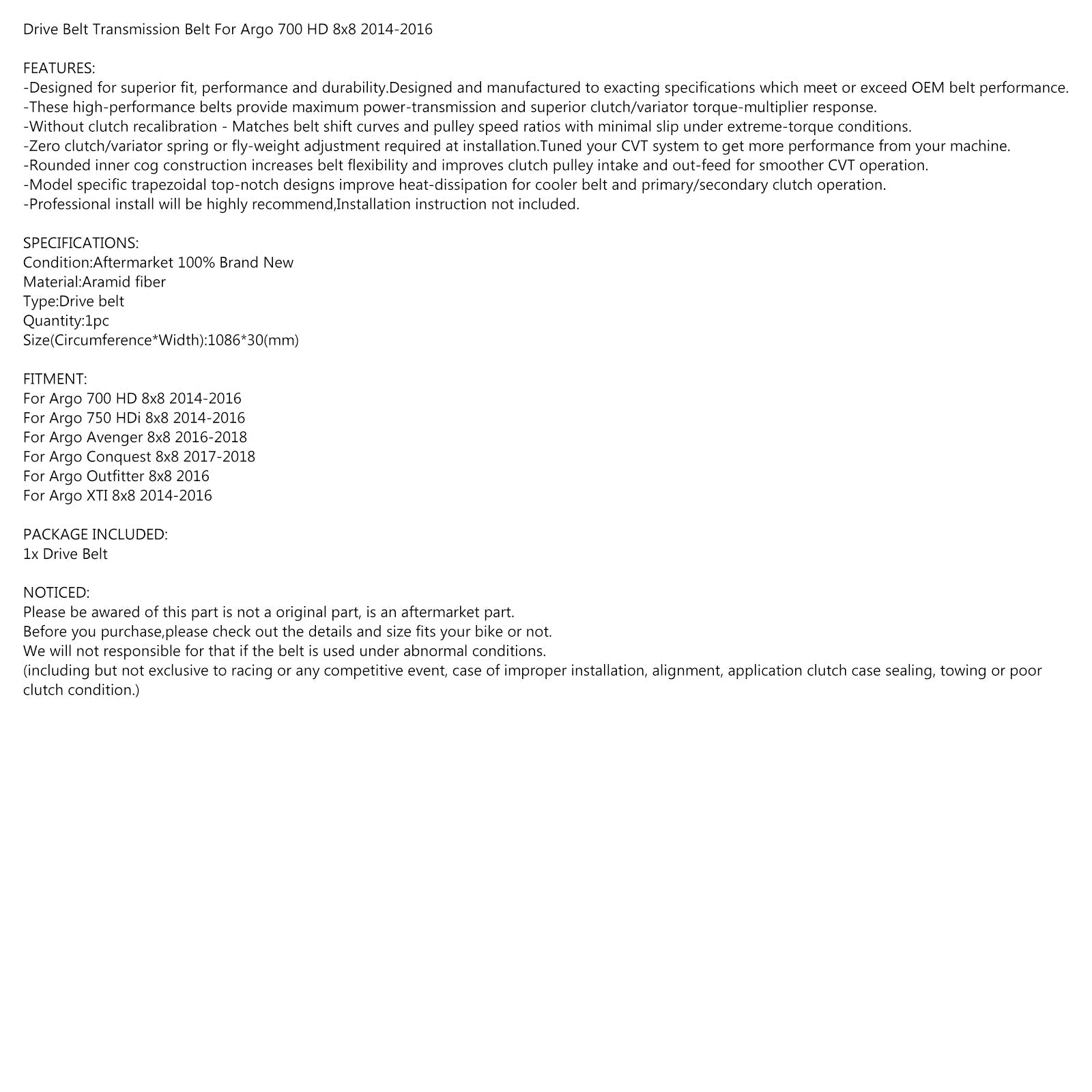 Cinghia di trasmissione per Argo 700 HD HDi 8x8 2014-2016 Avenger 8x8 2016-2018 XTI 8x8 14-16 Generico