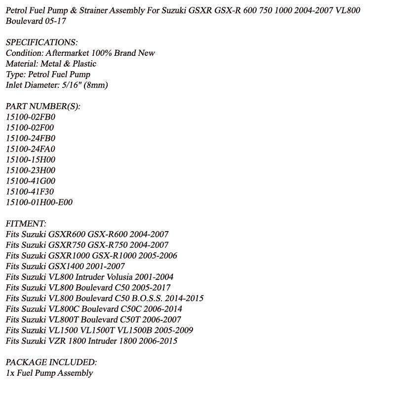 Pompa carburante e filtro per Suzuki 04-07 GSXR 600 750 05-06 GSXR-1000 15100-41G00 Generico