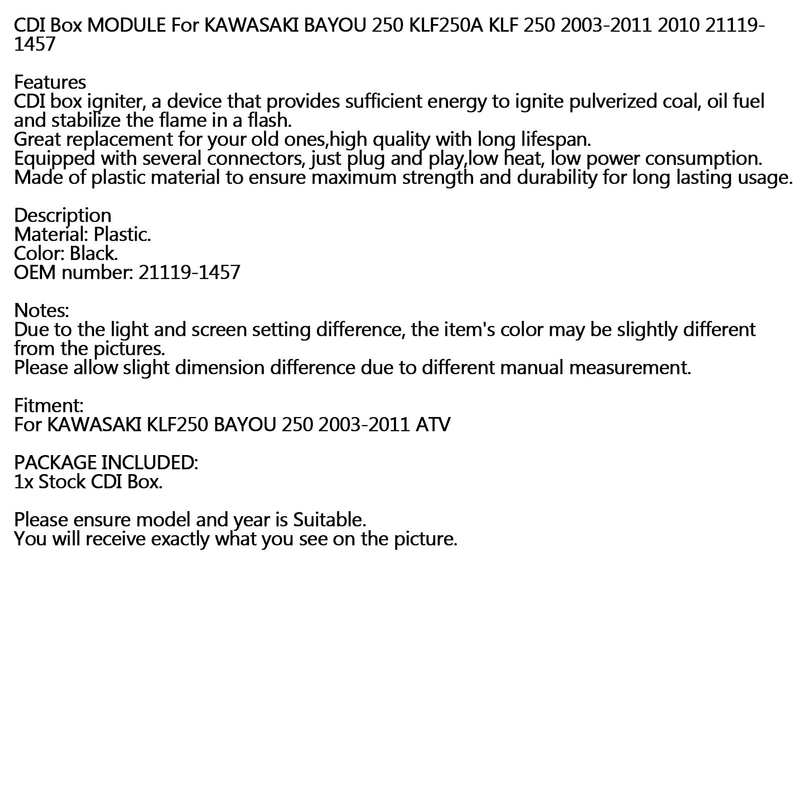 CDI Box MODULO Per KAWASAKI BAYOU 250 KLF250A KLF 250 2003-2011 2010 21119-1457 Generico