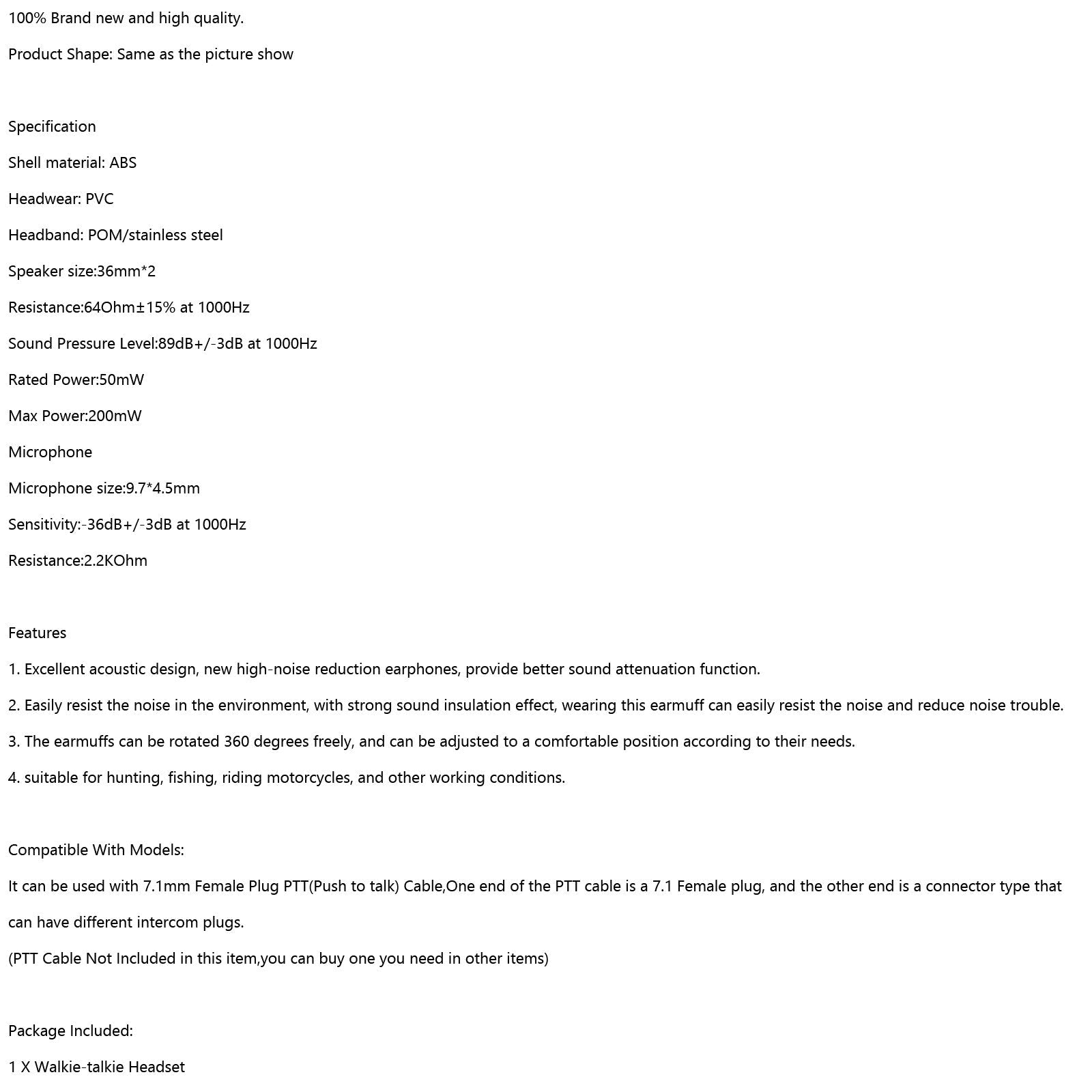 Può essere utilizzato con un cavo PTT (Push to talk) con spina femmina da 7,1 mm, un'estremità del cavo PTT è una spina femmina da 7,1 mm e l'altra estremità è un tipo di connettore che può avere diverse spine interfono.