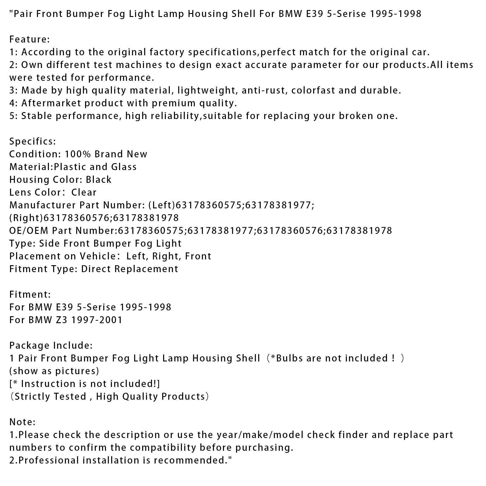 1. Prima dell'acquisto, controllare la descrizione o utilizzare lo strumento di ricerca per anno/marca/modello e sostituire i numeri dei pezzi per confermare la compatibilità.