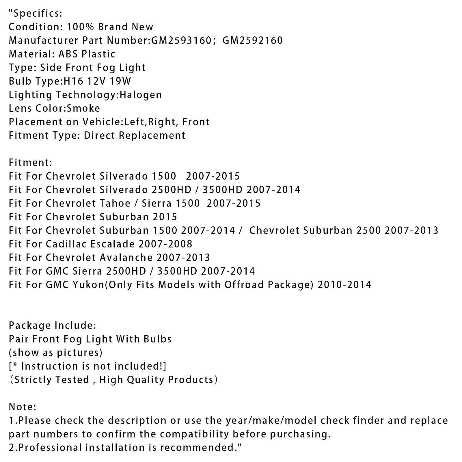 Coppia di fari fendinebbia anteriori con lampadine per Chevy Silverado 2007-2013, lenti fumé