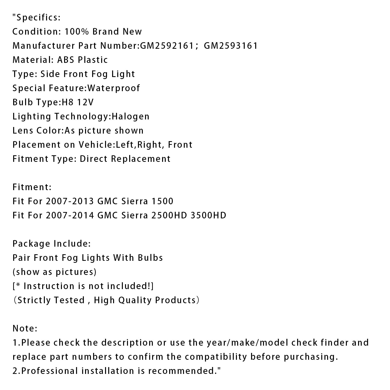 Coppia di fari fendinebbia anteriori con lampadine per GMC Sierra 1500 2007-2013