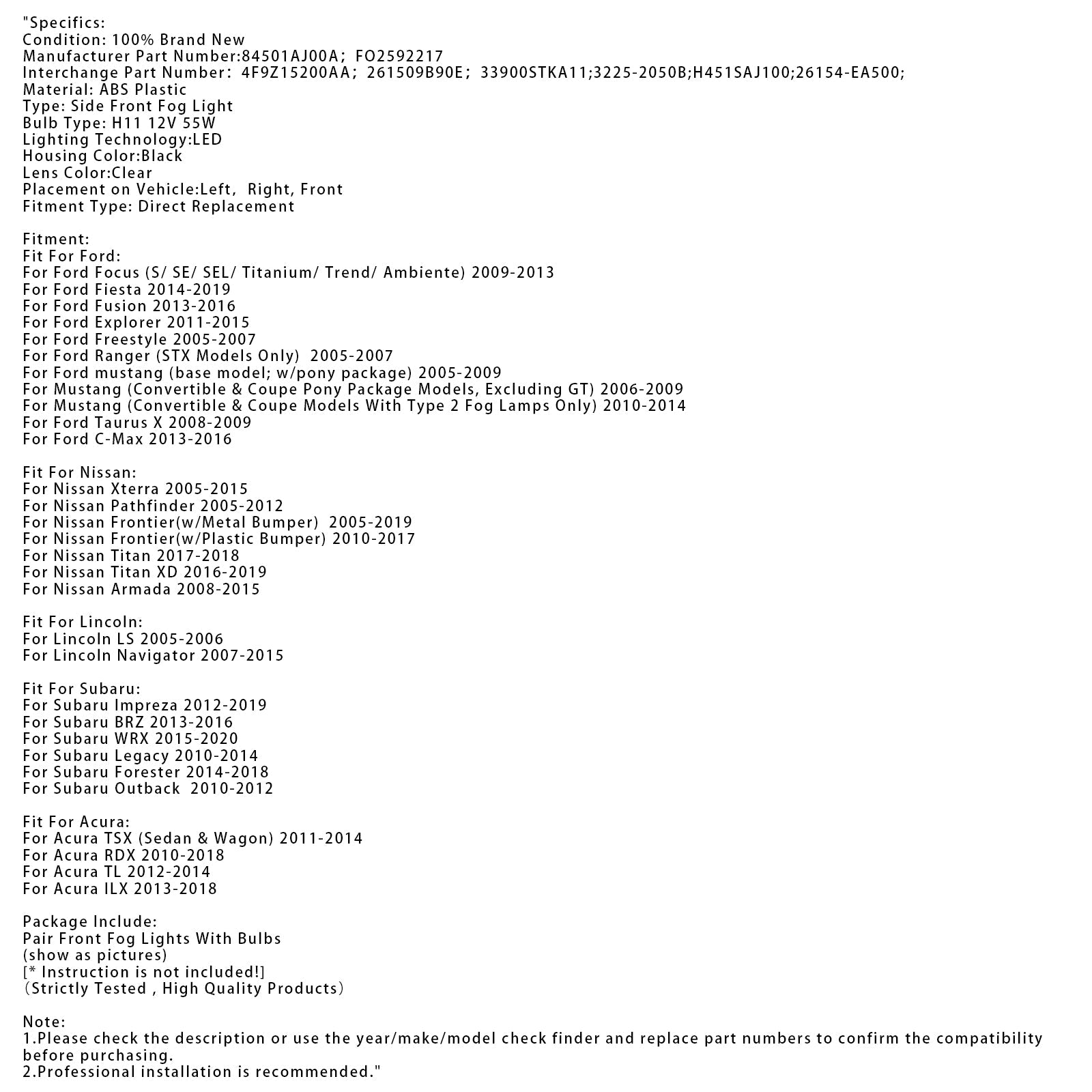 1. Prima dell'acquisto, controllare la descrizione o utilizzare lo strumento di ricerca per anno/marca/modello e sostituire i numeri dei pezzi per confermare la compatibilità.