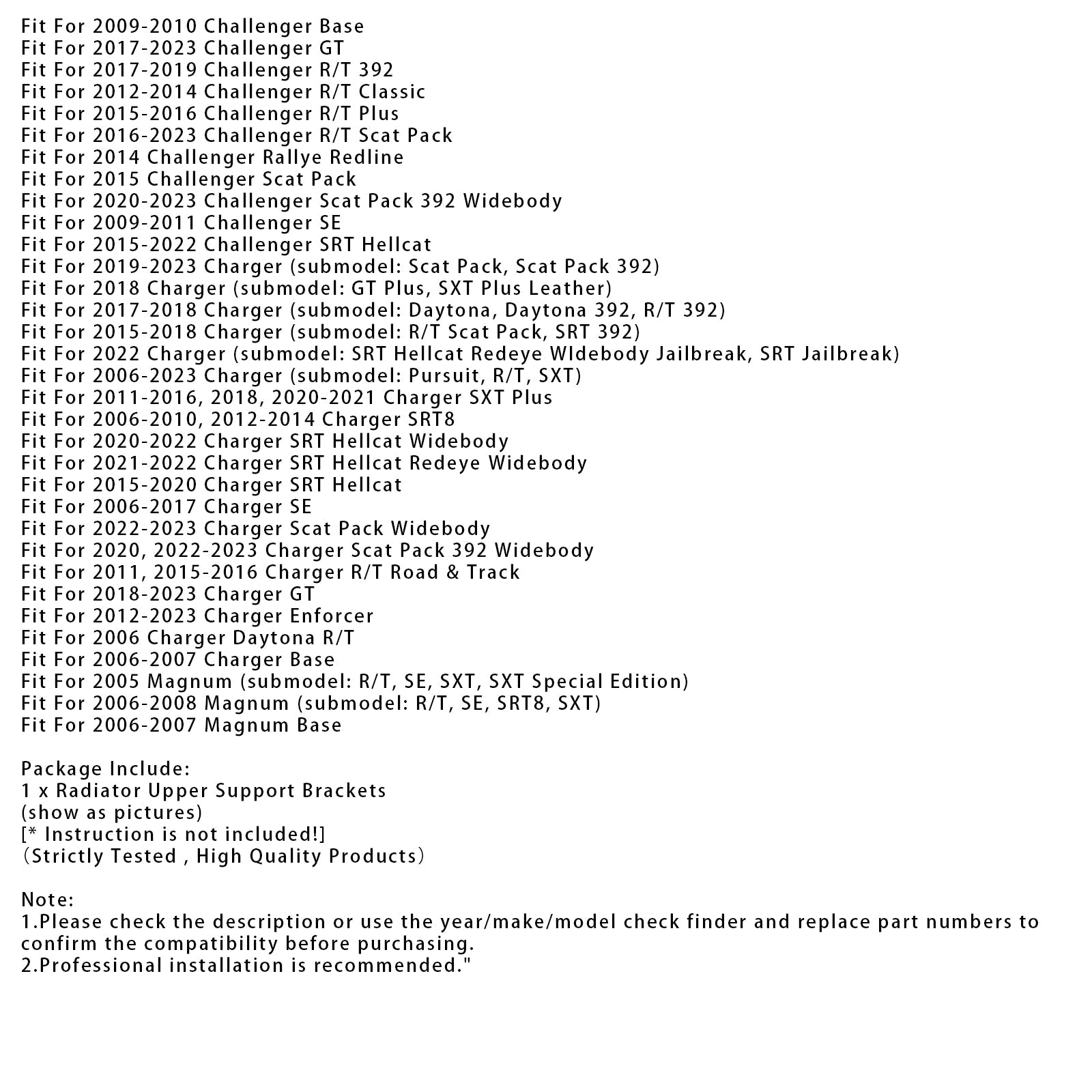 1. Prima dell'acquisto, controllare la descrizione o utilizzare lo strumento di ricerca per anno/marca/modello e sostituire i numeri dei pezzi per confermare la compatibilità.