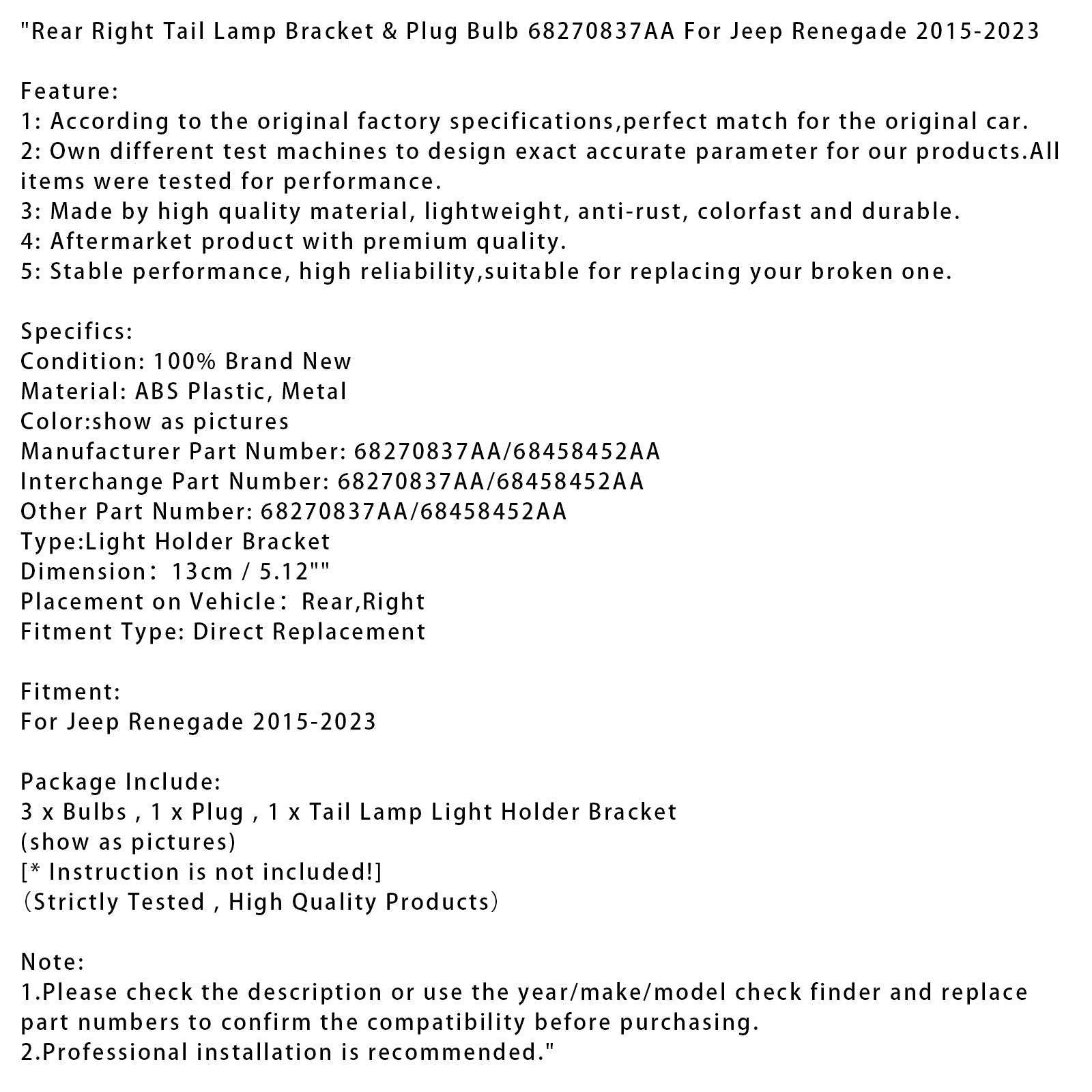 1. Prima dell'acquisto, controllare la descrizione o utilizzare lo strumento di ricerca per anno/marca/modello e sostituire i numeri dei pezzi per confermare la compatibilità.