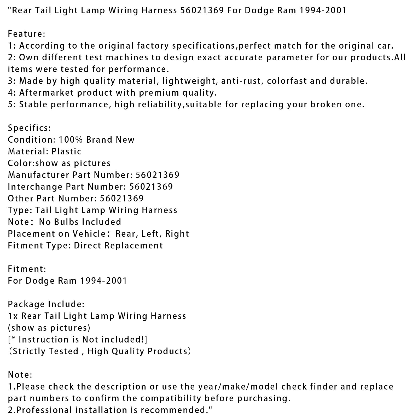 Cablaggio lampada fanale posteriore 56021369 per Dodge Ram 1994-2001
