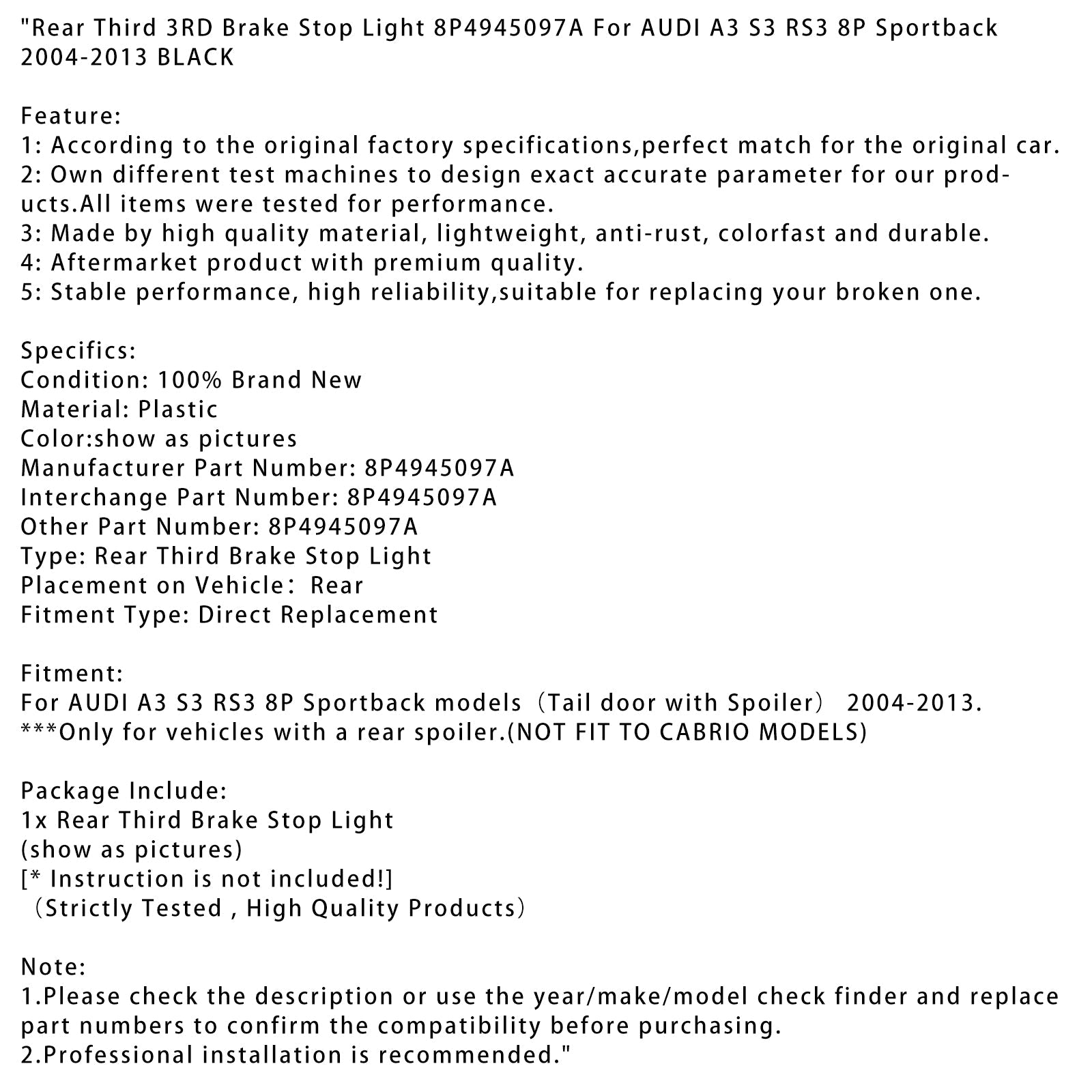 Luce di stop posteriore 3° freno 8P4945097A per AUDI A3 S3 RS3 8P Sportback 2004-2013 NERO