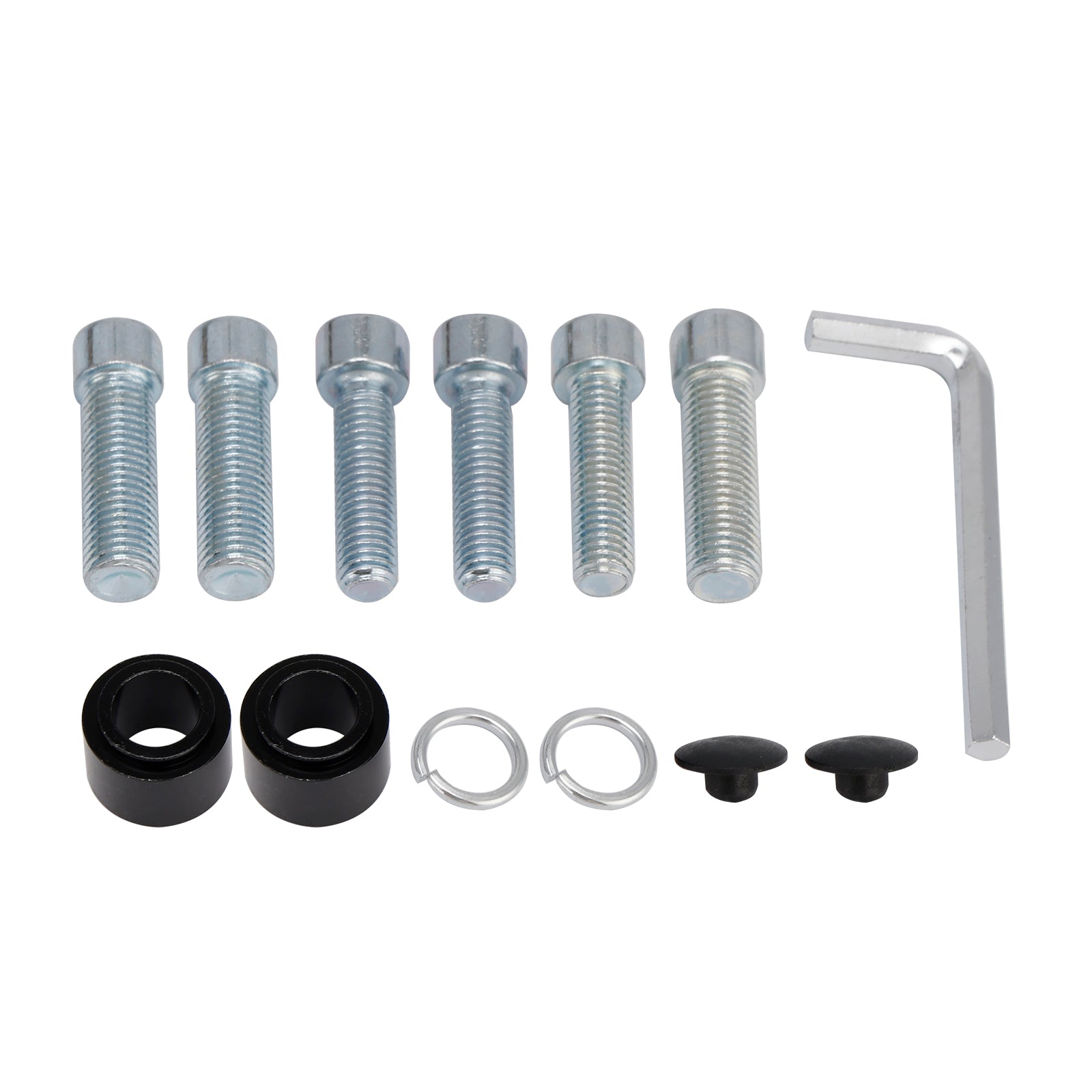 Inclusi bulloni di montaggio da 8 mm e 10 mm, collari e tappi per i fori degli specchietti.