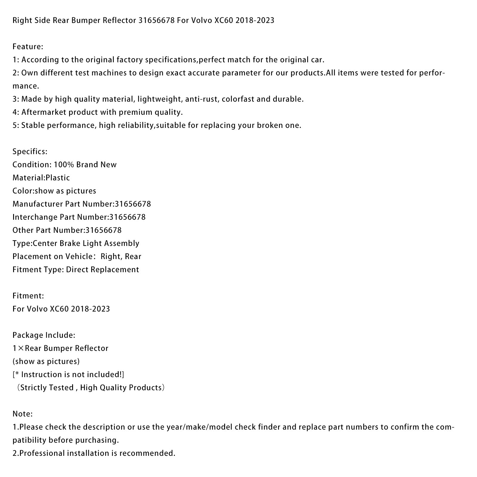 Riflettore paraurti posteriore destro 31656678 adatto per Volvo XC60 2018-2023