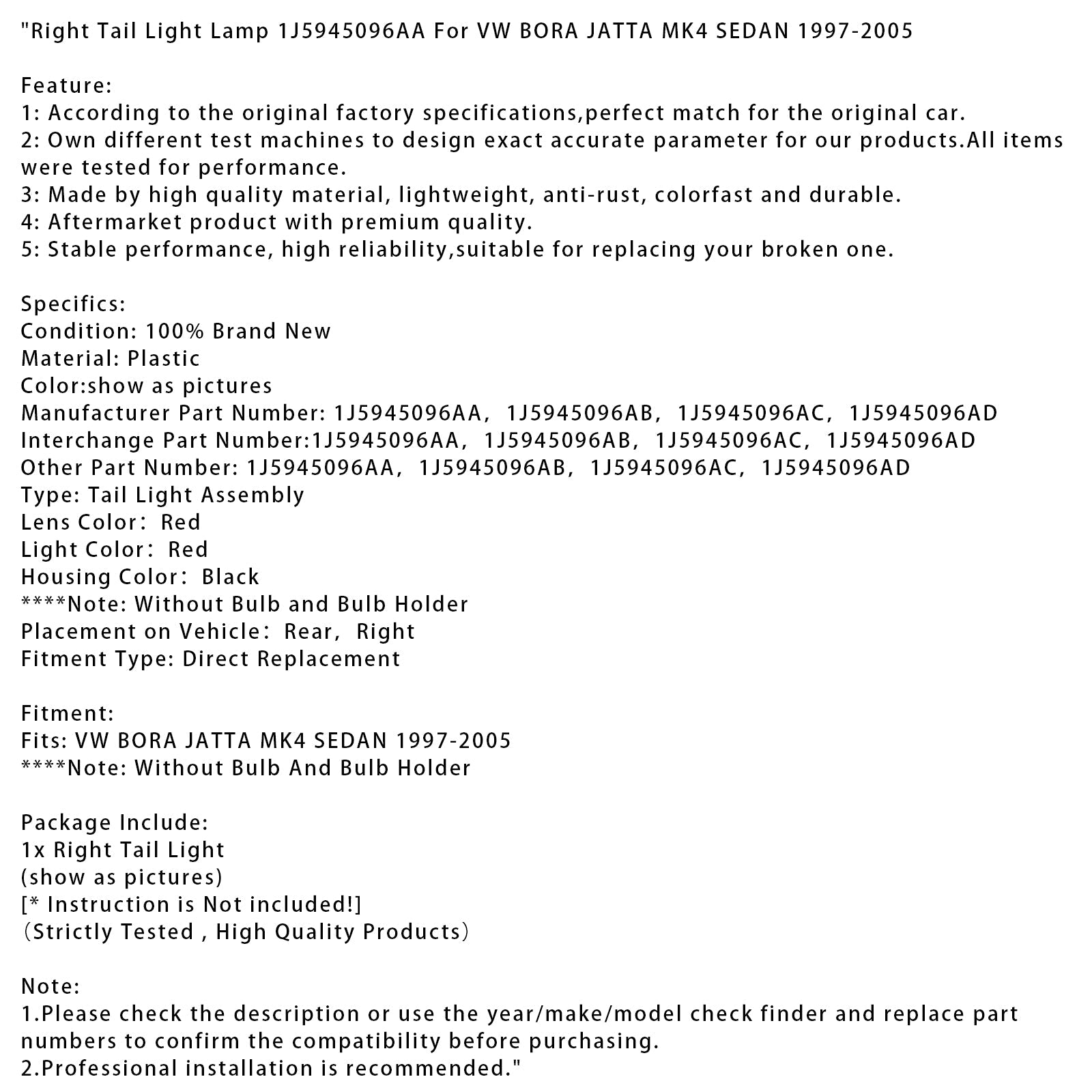 Lampada fanale posteriore destro VW BORA JATTA MK4 SEDAN 1997-2005 1J5945096AA 1J5945096AB