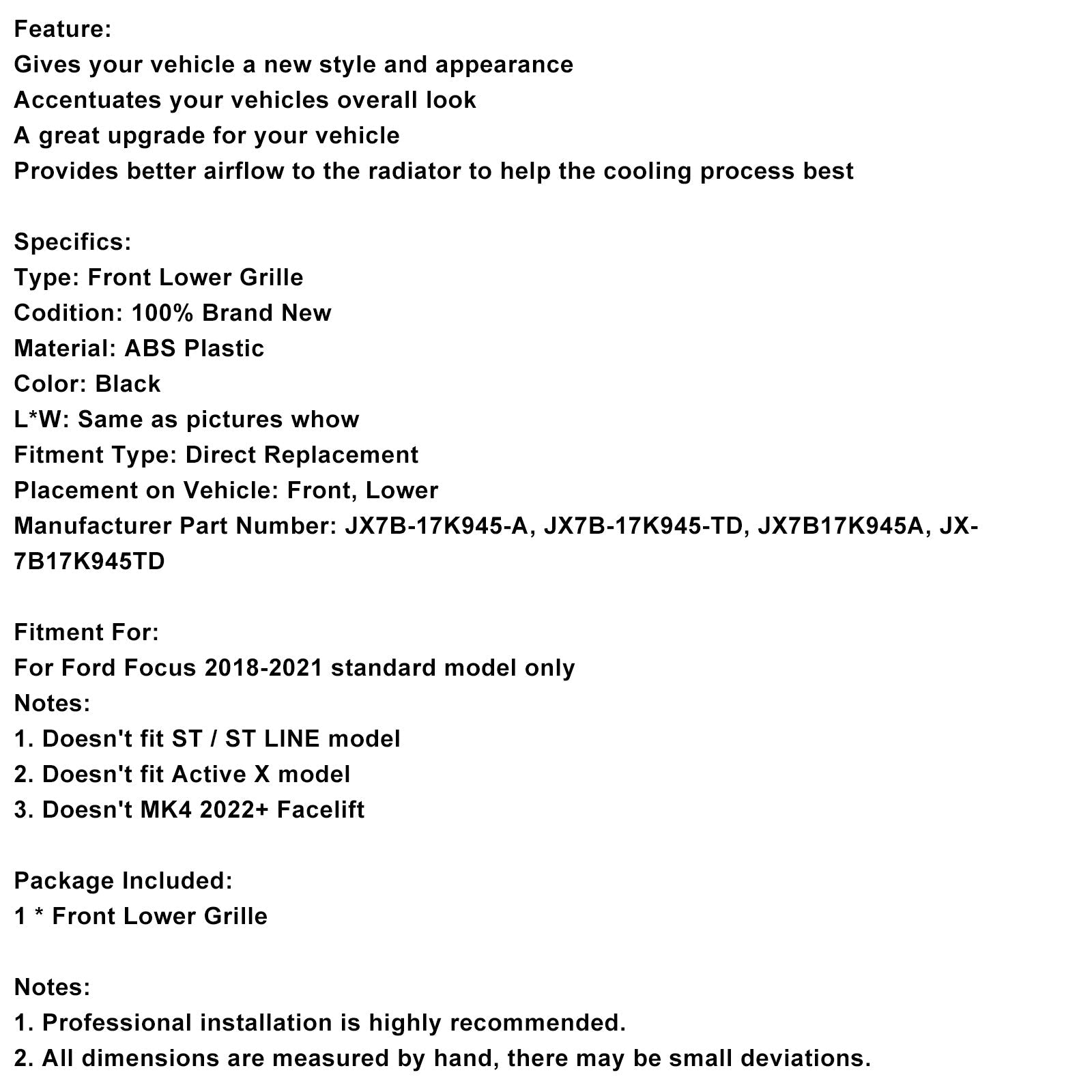 Griglia inferiore paraurti anteriore stile St adatta per Ford Focus MK4 2018-2021 nera