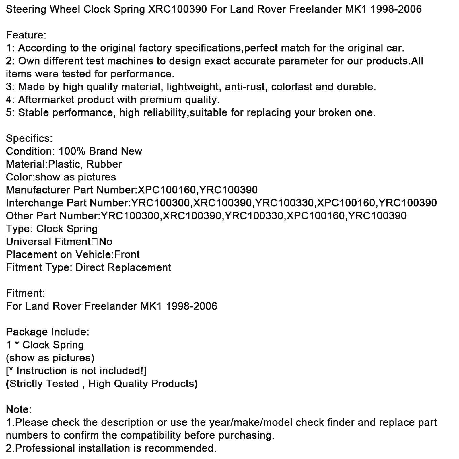 1. Prima dell'acquisto, controllare la descrizione o utilizzare lo strumento di ricerca per anno/marca/modello e sostituire i numeri dei pezzi per confermare la compatibilità.