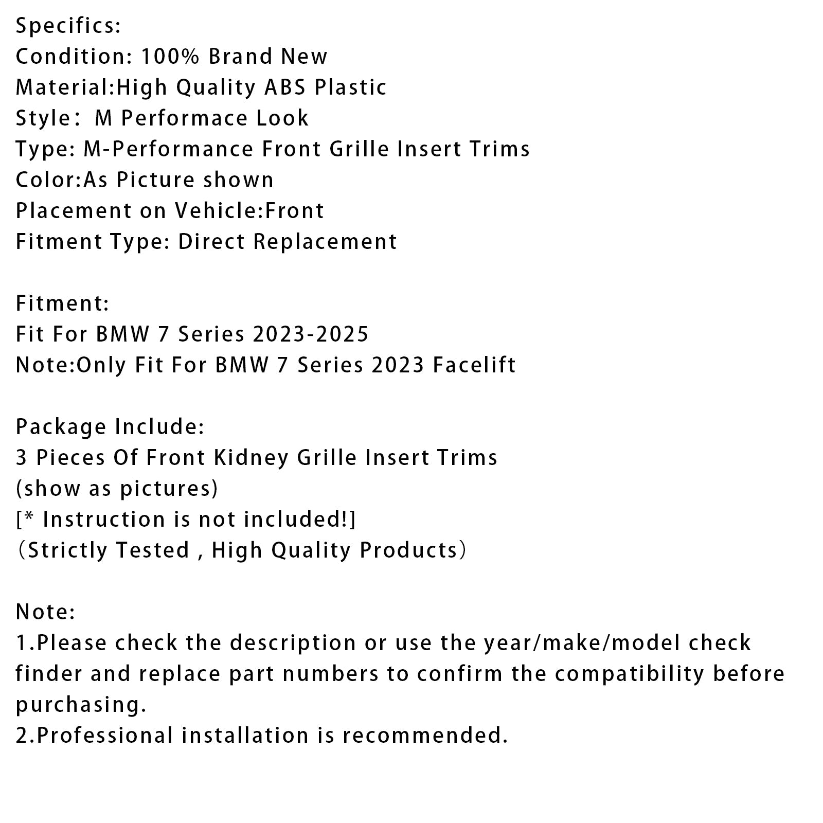 Nota: adatto solo per la serie BMW 7 2023 dopo la modifica Facelift
