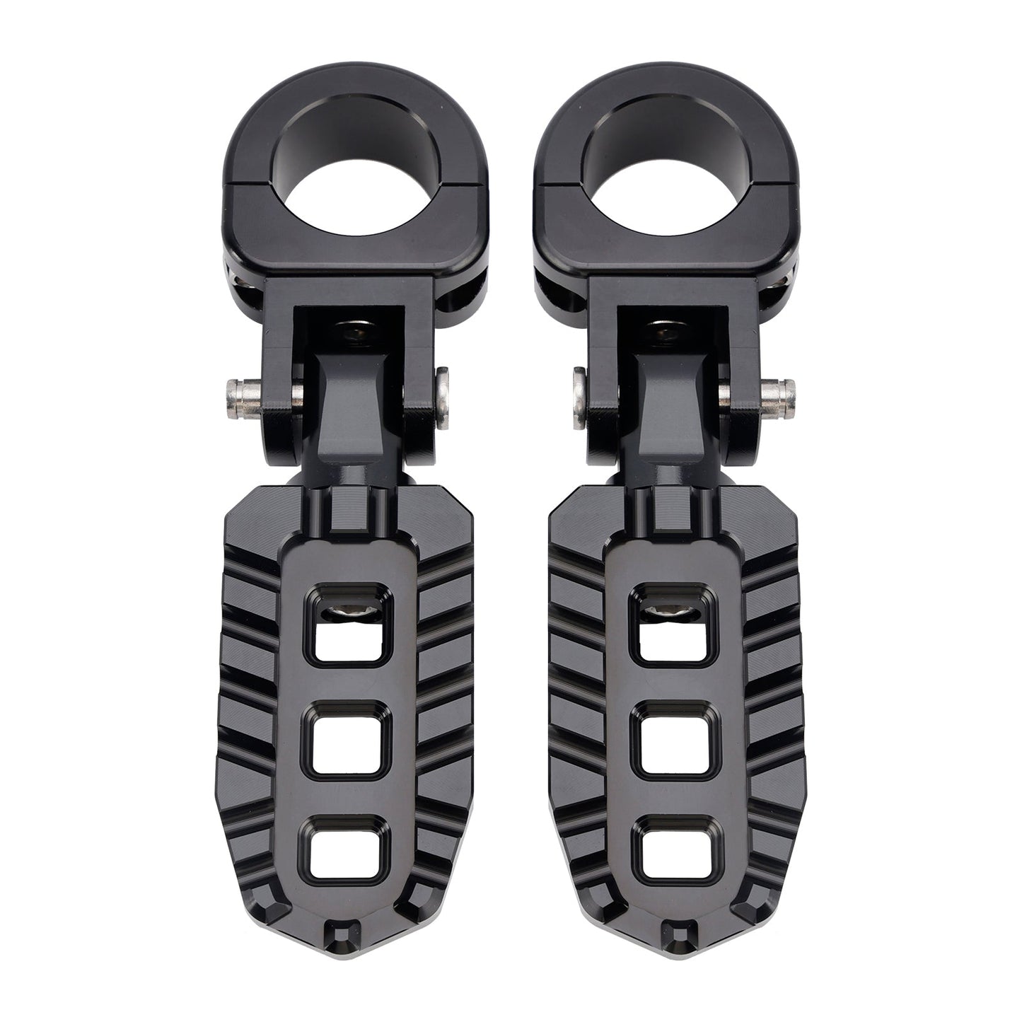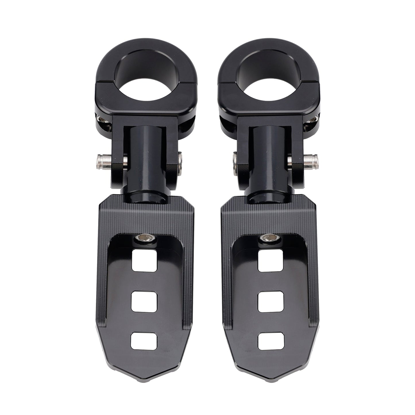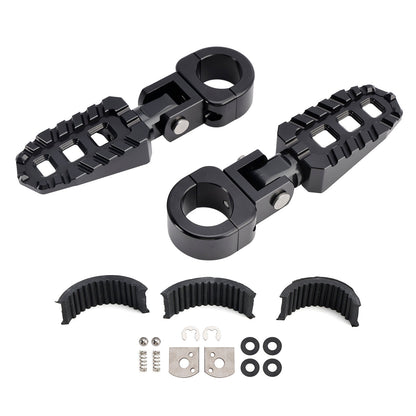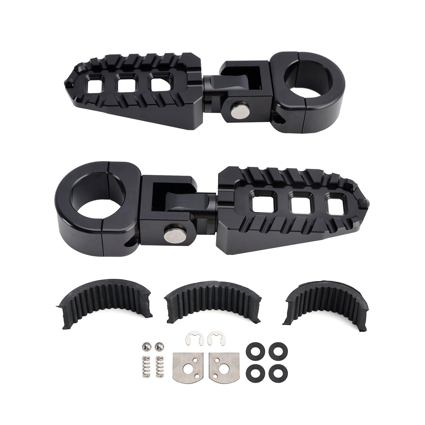 I pedali poggiapiedi Universal Highway Rest possono essere montati su barre da 1 pollice (25 mm), 1,06 pollici (27 mm-28 mm) o 1,25 pollici (31,75 mm) e sono dotati di 3 rondelle in gomma per generare una forza di serraggio sufficiente a impedire ai poggiapiedi di ruotare sulle barre. (Le rondelle in gomma sono necessarie per il montaggio su barre da 1 pollice (25 mm), 1,06 pollici (27 mm-28 mm)). I poggiapiedi possono essere posizionati a qualsiasi angolazione per personalizzare la vestibilità della tua bici e migliorare il tuo comfort.