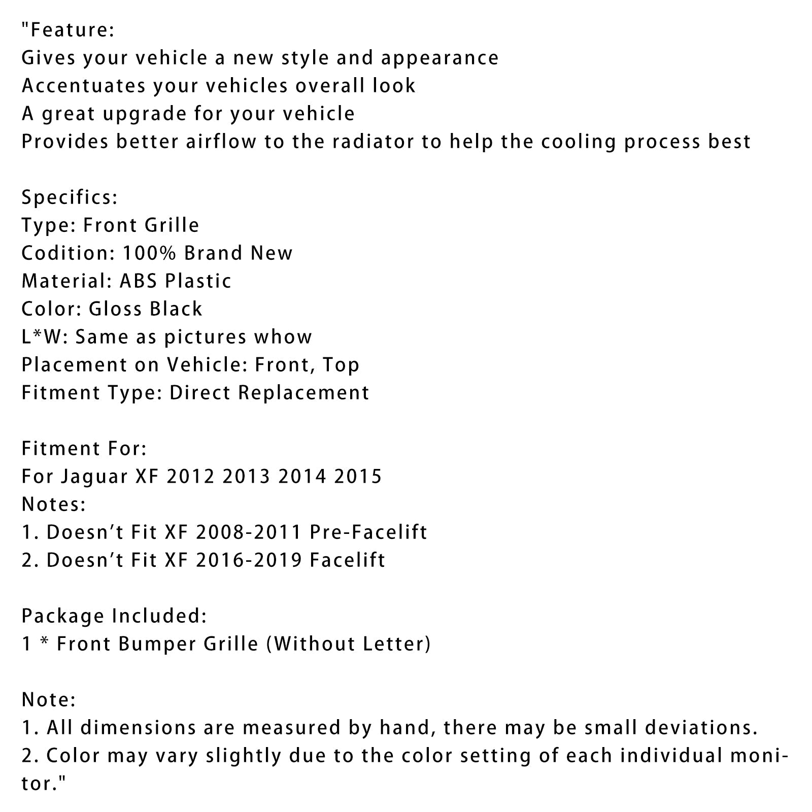 Griglia paraurti anteriore stile XF-R adatta per Jaguar XF 2012-2015, nero lucido
